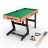 Домашний бильярд — лучшее развлечение на каждый день и в праздники для всей семьи! Игровой стол DFC «SUPER CHAMPION» SB-BT-02LSSC в яркой красно-синей расцветке подарит море веселья и радости детям и взрослым. Особенности стола Игровое поле Поле для игры размерами 52,7 х 114 см сделано из МДФ толщиной 4,75 мм. От вылета шаров защищают стенки высотой 10 см по всему периметру. Высота стенок по бокам 12 мм, ширина - 30 мм. Ножки стола Ножки шириной 80 мм изготовлены из МДФ толщиной 13 мм, для большей прочности они ламинированы ПВХ чёрного цвета. Конструкция укреплена специальной перекладиной из того же материала, её толщина составляет 12 мм. Складная конструкция Стол легко складывается для хранения в вертикальном положении. Его можно убрать к стене или в кладовку: в сложенном состоянии он занимает минимум свободного пространства. Комплектация Стол рассчитан на двух игроков, поэтому в комплект входят два кия длиной 92,5 см и два мела. Также в набор входит всё необходимое для комфортной игры: комплект шаров, диаметром 37 мм, изготовленных из смолы; треугольник и щётка для игрового поля. Ширина лузы - 6 см.
