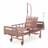 Каркас стальной с защитным эмалевым покрытием. Положение подвижных секция осуществляется с помощью червячного привода. Боковые поручни опускаются до уровня ложа. Торцевые спинки сьемные. В основании кровати предусмотрена полка для хранения санитарного устройства.