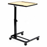 Надкроватный столик из пластика, устанавливаемый на боковые ограждения шириной он 80 до 105 см. Столик оснащён регулируемыми раздвижными кронштейнами, с помощью которых фиксируется между боковыми ограждениями госпитальных, или домашних кроватей лежачего больного с различной шириной ложемента. Расстояние между боковыми ограждениями от 80 до 105 см. сделан из пластика с декоративной ПВХ плёнкой по центру столешницы и оснащён для прочности стальными кронштейнами и рамой. Использованные материалы и особенности открытой конструкции столика позволяют его мыть под струёй воды.